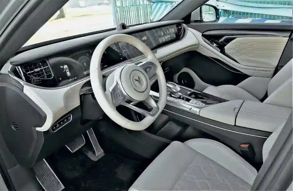 В салоне качественные и хорошо подобранные отделочные материалы: даже имитирующий дерево пластик выглядит солидно. Есть и амбиентная подсветка с целой палитрой цветов. Передние сиденья имеют электрорегулировки в 12 направлениях и снабжены функциями обогрева, вентиляции и массажа. Венчает все это электро-хроматическая панорамная крыша, «закрыть» которую можно с помощью манипуляций на сенсорном экране.