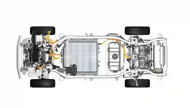 На передней оси стоит один двигатель с пиковой мощностью (272 л. с. и 350 Нм), на задней – два суммарной мощностью 544 л. с. и крутящим моментом 700 Нм. К моторам присоединены трансмиссионные блоки, по одному на каждой оси. В каждом блоке находятся дифференциал с механической блокировкой и двухступенчатый редуктор: одна передача в нем для дороги, вторая – для бездорожья. А собственно коробки передач у автомобиля нет: электродвигатели в ней не нуждаются.