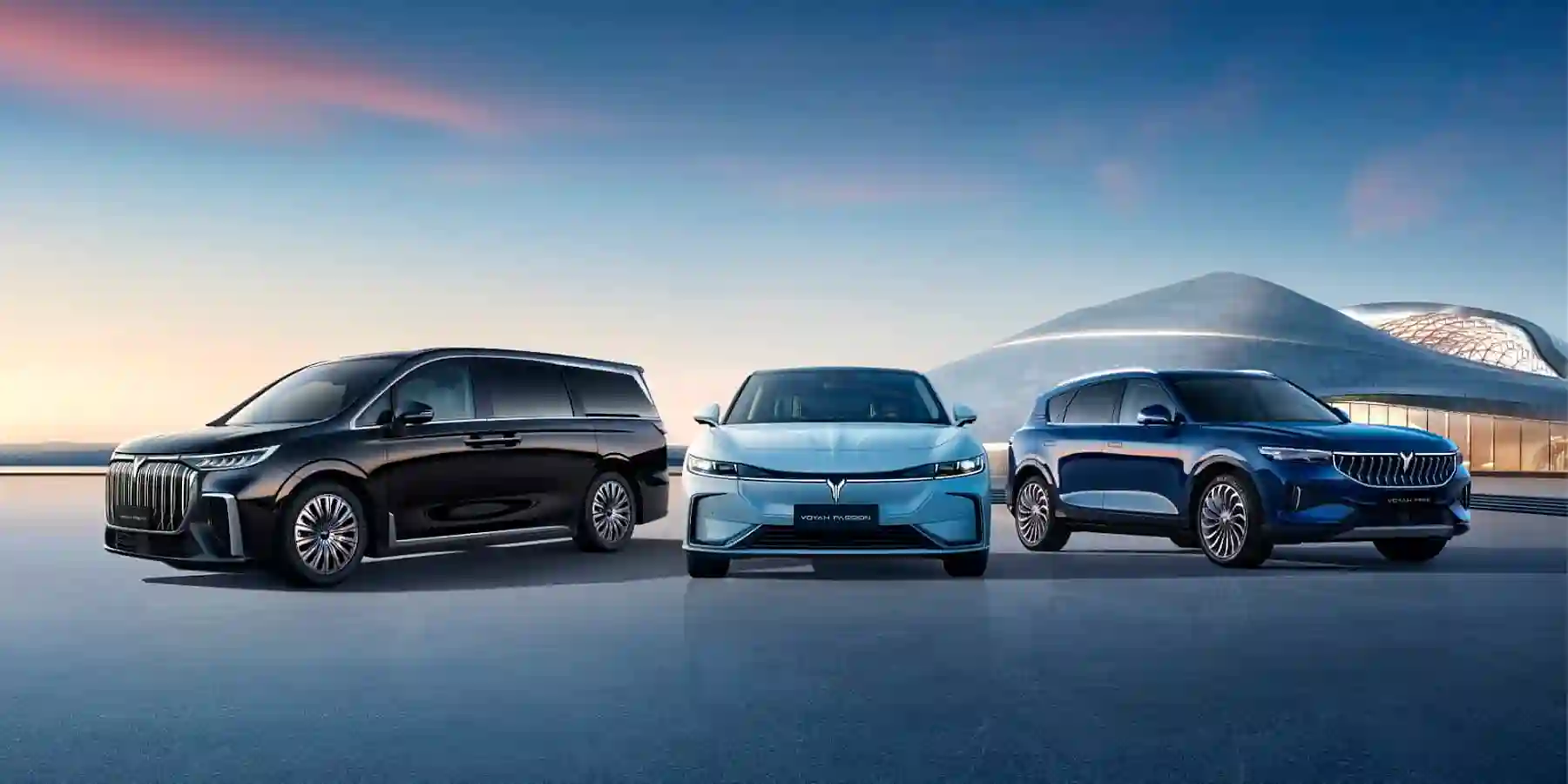 Модельная линейка бренда люксовых электромобилей VOYAH включает в себя интеллектуальный кроссовер VOYAH FREE в нескольких модификациях, в том числе с увеличенным запасом хода EVR, роскошный минивэн VOYAH DREAM в гибридной и полностью электрической версиях, а также инновационный седан VOYAH PASSION объединивший комфорт представительского класса с непревзойденной динамикой спорткара.